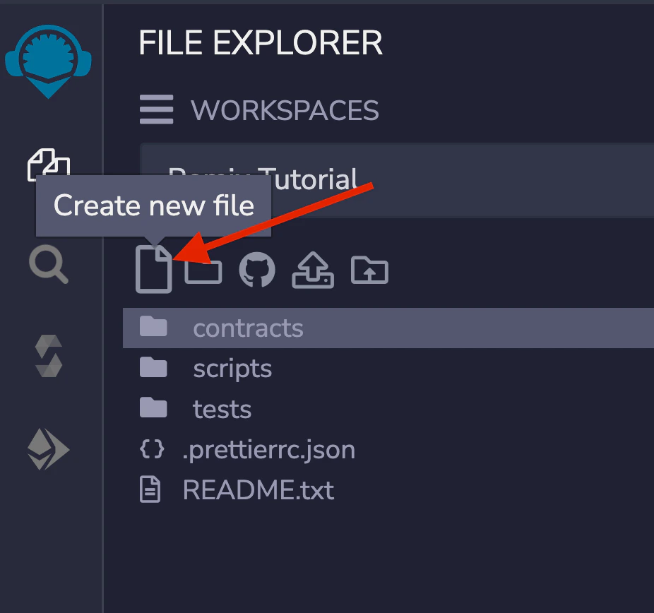 Open your web browser and navigate to Remix IDE. Click on the file icon in the File Explorer tab to create a new file and name it