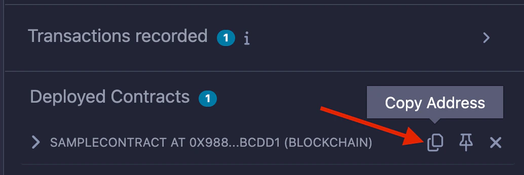 Copy the contract address from the Deployed Contracts window.