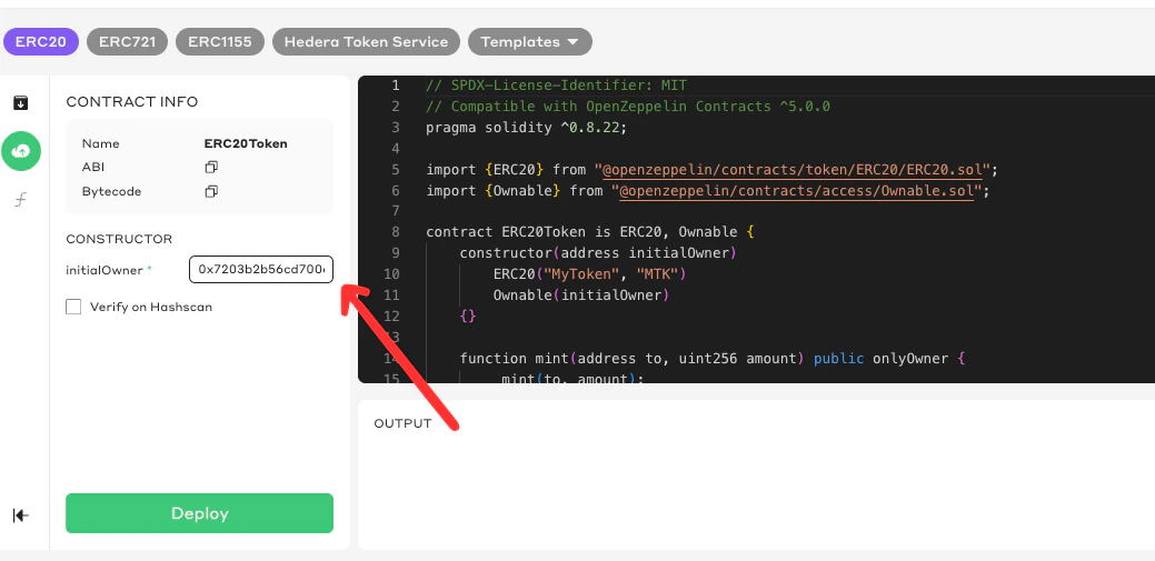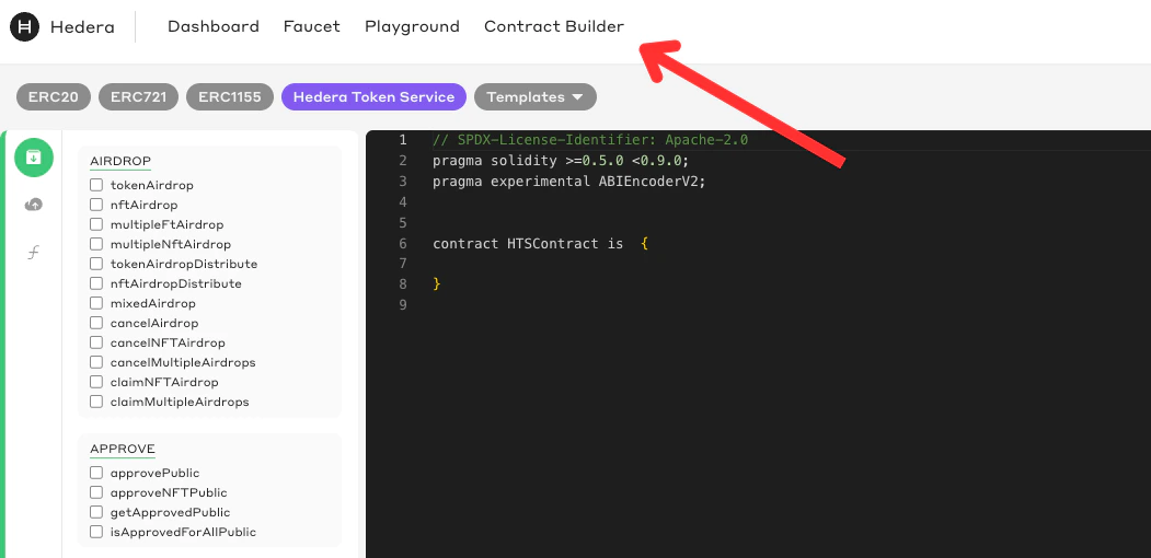 Head over to the Hedera Smart Contract Builder, a powerful web-based IDE for compiling and deploying contracts.