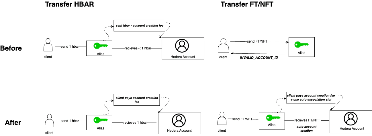 An alias is an initial public key that will convert into a Hedera account through auto-account creation. An alias consists of <shard>.<realm>.<bytes>. To learn more about accounts created via an account alias go here.