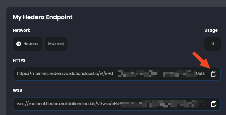 Note: Validation Cloud provides RPC endpoints for Hedera Mainnet and Hedera Testnet but not for Hedera Previewnet.